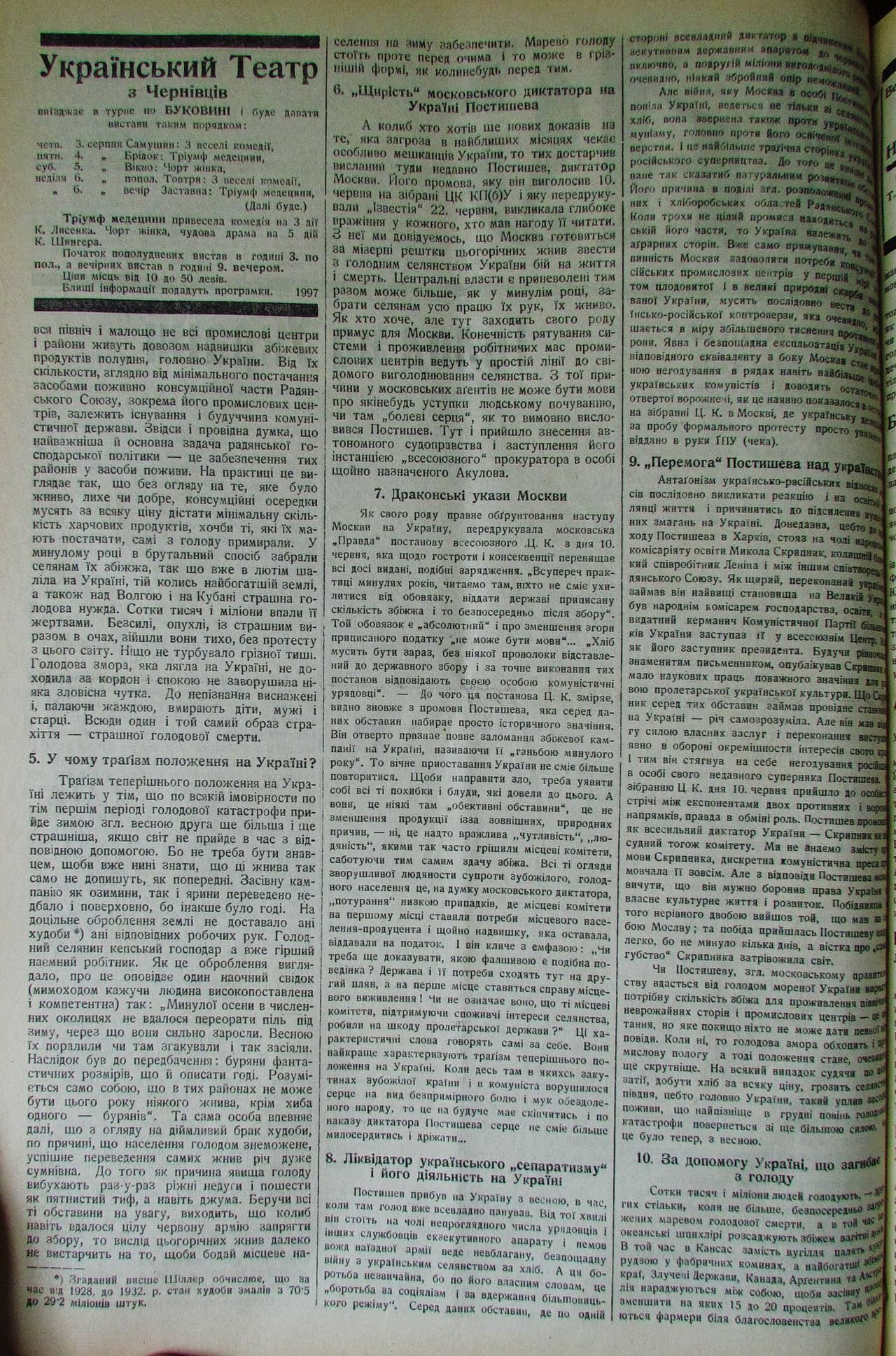 Попередня стаття: 42. Публікація генерального секретаря Конгресу Національностей стосовно ситуації на підрадянській Україні. 4 серпня 1933 року.