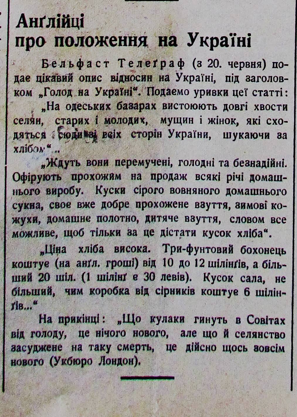 2. Англійська преса про Голод в Україні. 9 липня 1932 року.