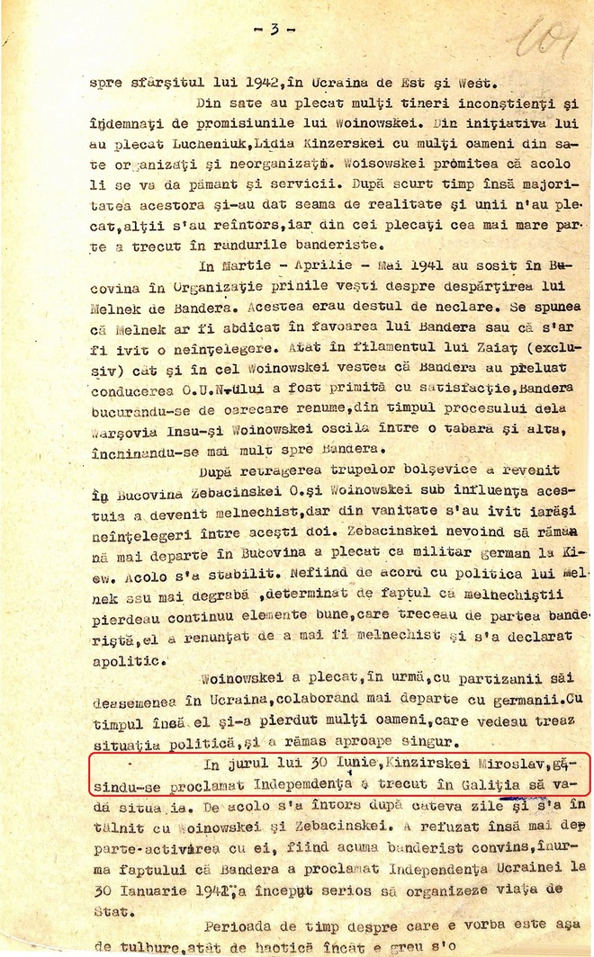 В іншій довідці, яка також зберігається в архіві СБУ, міститься навіть склад "Українського комітету", сформованого ОУН, який 7 липня 1941 року взяв владу в місті Чернівці в свої руки.